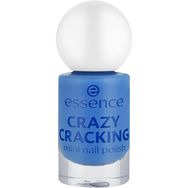 Mini vernis à ongles CRAZY CRACKING 04 dans un mini packaging ludique avec bouchon sphérique. Il contient un vernis bleu ciel qui donne à vos ongles un fini craquelé sensationnel. Pour un fini parfait, appliquez d’abord un vernis à ongles coloré comme base coat, puis laissez-le sécher complètement. Pour un résultat optimal, utilisez un base coat d’une couleur contrastant avec celle du vernis. Ensuite, appliquez une fine couche du top coat CRAZY CRACKING pour obtenir de petites craquelures. Pour des craquelures plus grandes, appliquez une couche plus épaisse. Dans les deux cas, vous obtiendrez un effet craquelé spectaculaire.