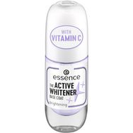 Faites resplendir vos ongles en quelques secondes grâce au base coat essence THE ACTIVE WHITENER. Il a été conçu pour lutter contre le jaunissement. Pour des ongles visiblement plus blancs et plus sains. Enrichie en vitamine C, la formule prend soin de vos ongles. Elle s’applique facilement pour un fini naturel. À utiliser seul ou comme base sous votre vernis préféré. Complète votre routine de soin des ongles. Pour des ongles soignés.