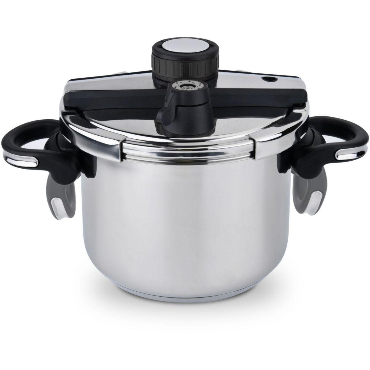 Caractéristiques générales Fond Tous feux dont induction Programmes 2 Sécurités 3 sécurités Compatibilité lave-vaisselle Cuve et panier Ouverture et fermeture A étrier Couvercle en verre Non Type produit Autocuiseur Particularité Poignées rabattables Capacité Ca