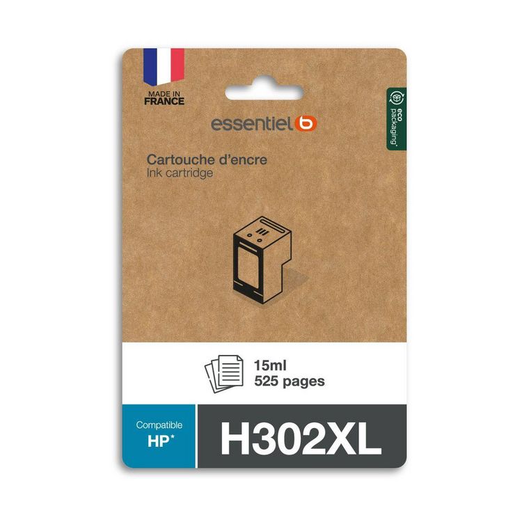 Caractéristiques générales Consommable Pour imprimante jet d'encre Type de produit 1 cartouche encre XL Référence cartouche / toner 302XL Nombre de pages moyenne 700.0 Marque compatible HP Cartouche compatible Essentiel B Coloris Coloris Noir Informations compléme