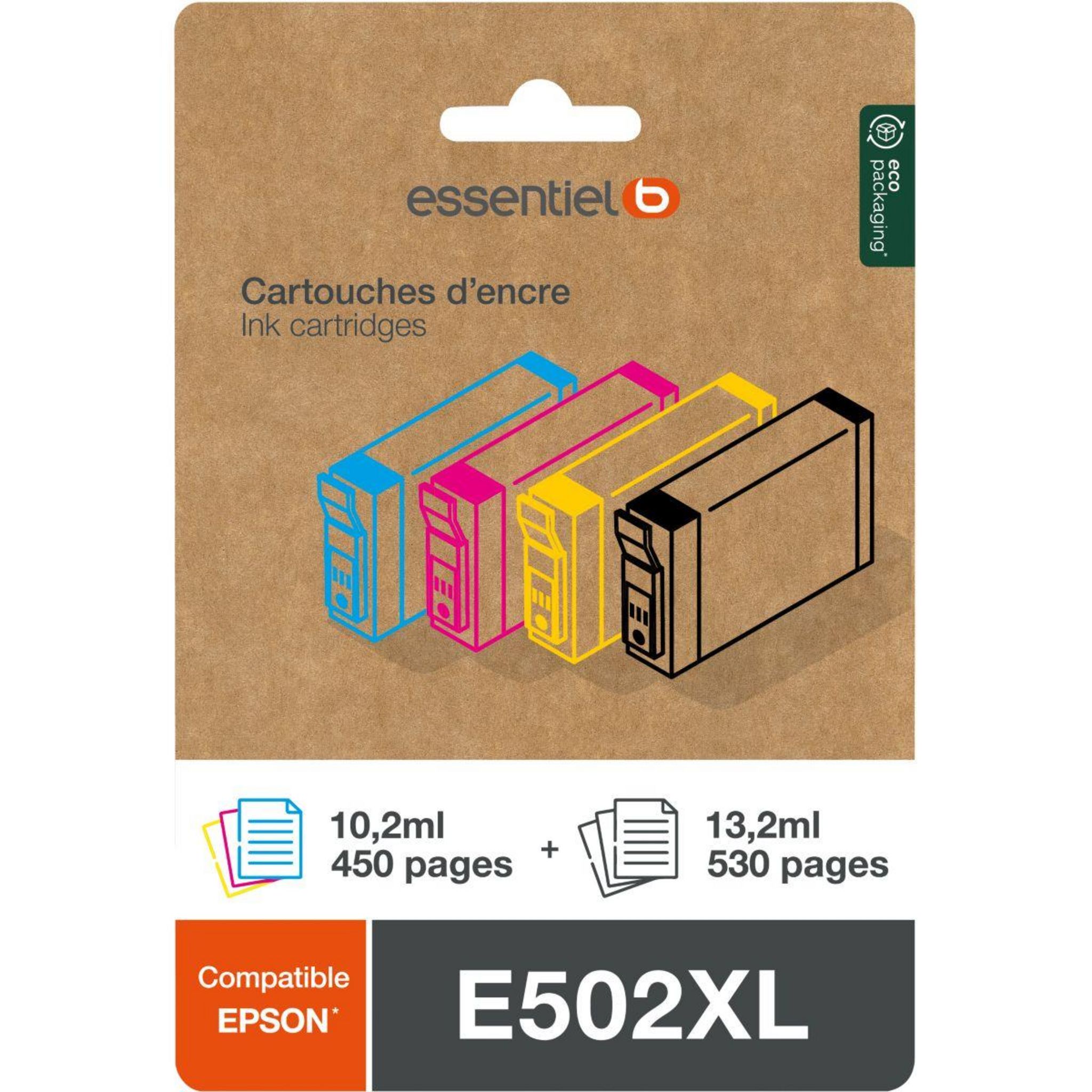 Cartouche d'encre Pack Compatible E502 XL (Noir + 3 Couleurs Haute Capacité)