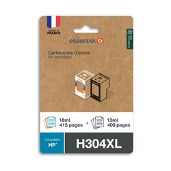 Caractéristiques générales Consommable Pour imprimante jet d'encre Type de produit 2 cartouches encre XL Référence cartouche / toner 304XL Nombre de pages moyenne 450.0 Marque compatible HP Cartouche compatible Essentiel B Coloris Coloris Noir, Cyan, Magenta, Jaune