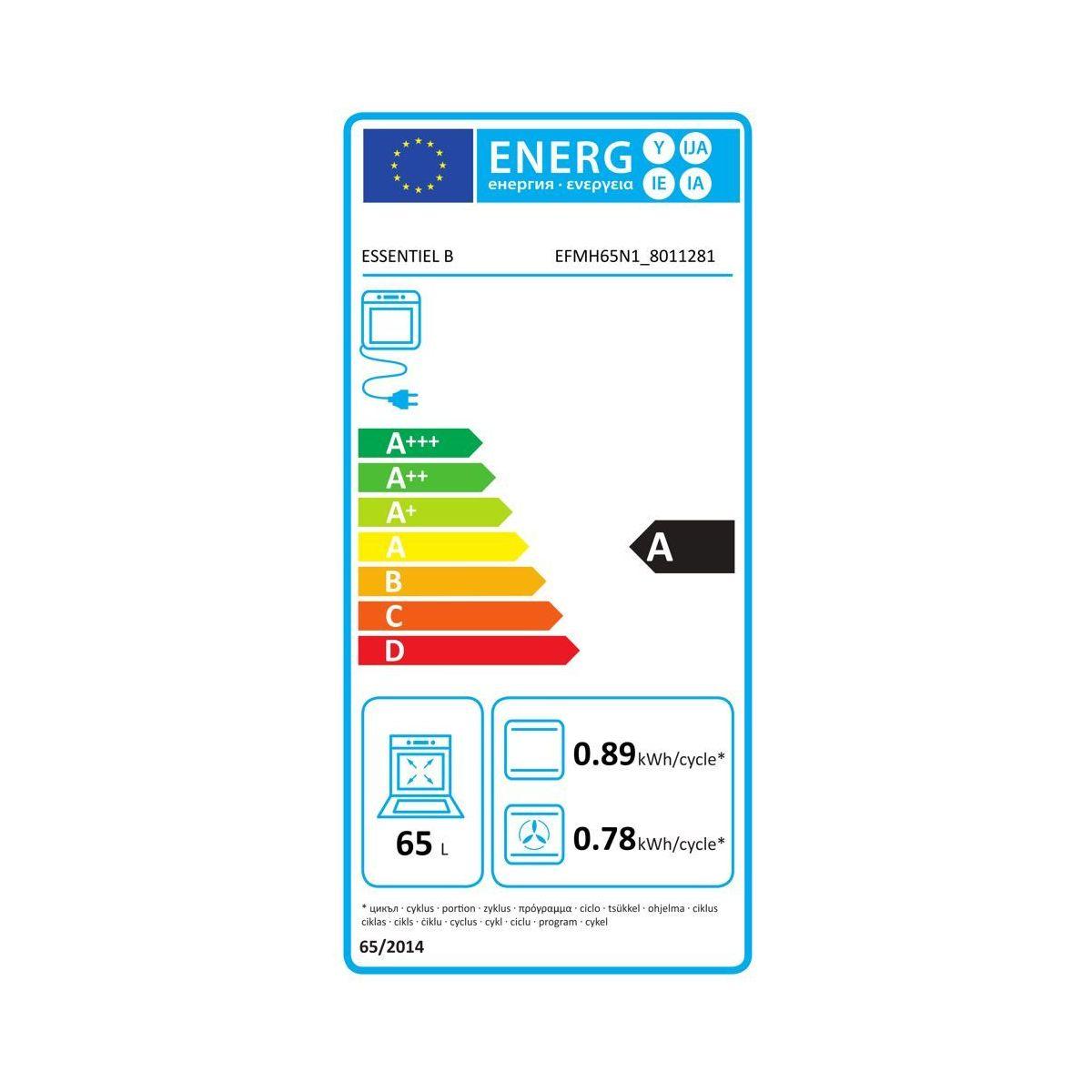 Sonde de cuisson : Sonde non intégrée A quel élément légal est soumis ce produit ? : Label Energie + fiche UE Type d'encastrement : Four standard (60 x 60 cm) Classe d'efficacité énergétique (présent sur le Label Energie) : A
