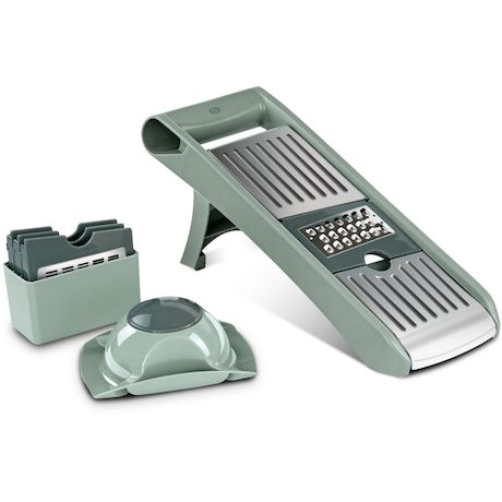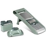| Particularité | Rapide et efficace, la mandoline dispose de lames ajustables en tranches plus ou moins épaisses pour les fruits, légumes, fromages | |