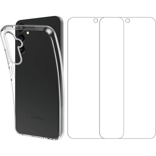 coque transparente souple mais qui protège bien mon samsung A35. verre trempé face avant très bien mise en place du verre trempé très facile.