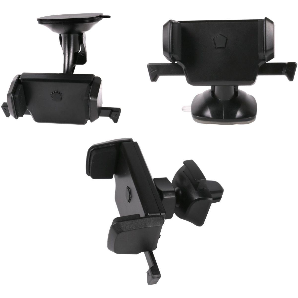 | Fonctionalités | Permet de fixer votre smartphone à la grille de ventilation, au pare-brise ou au tableau de bord grâce à ses trois modes de fixation. | |