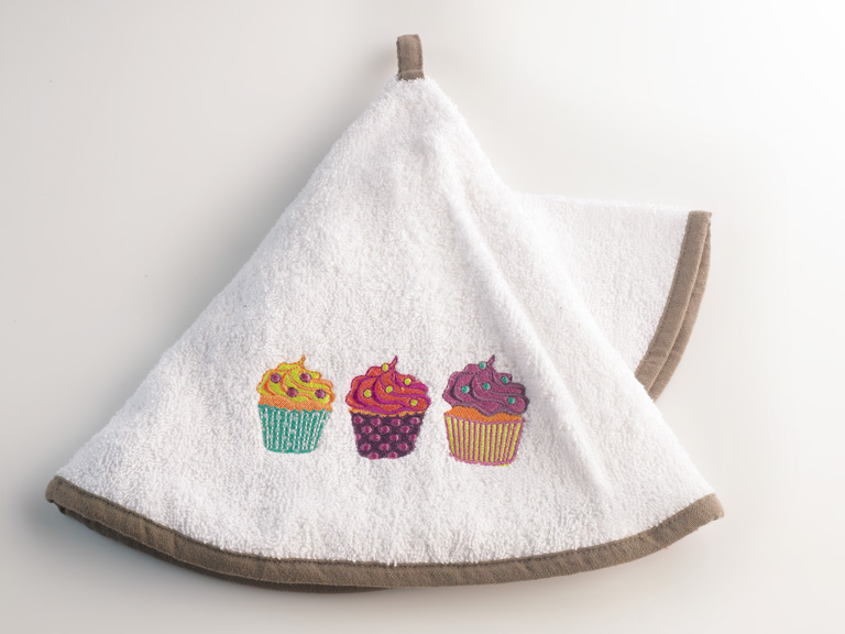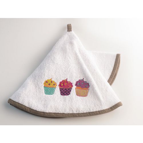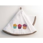 Un essuie-main de cuisine qui joint l'utile à l'agréable ! En éponge pur coton, tout rond, il nous régale de ses broderies "cupcakes" aux couleurs gourmandes. A s'offrir d'urgence avec les torchons assortis... humeur joyeuse garantie !