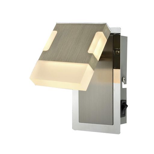 FICHE TECHNIQUE- Spot en acier brossé, chromé et acrilique satiné.- Flux lumineux : 400 lm.- Température Lumière : 3000K.- Non compatible avec un variateur d'intensité lumineuse.- Protection : IP20.CARACTERISTIQUES TECHNIQUES- Dimensions : L.9,5 x l. 7 x H. 13 cm.- Type de culot : SMD/LED.- Puissanc
