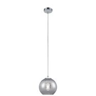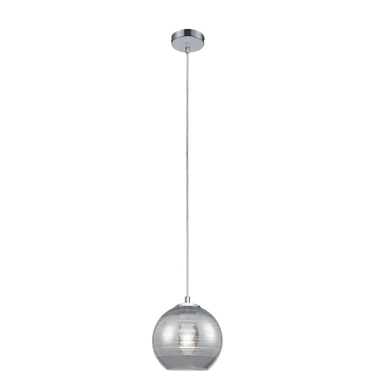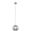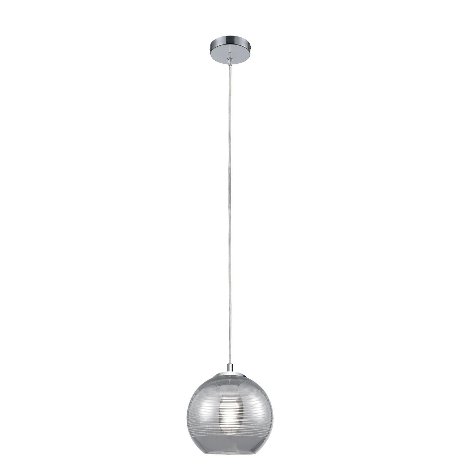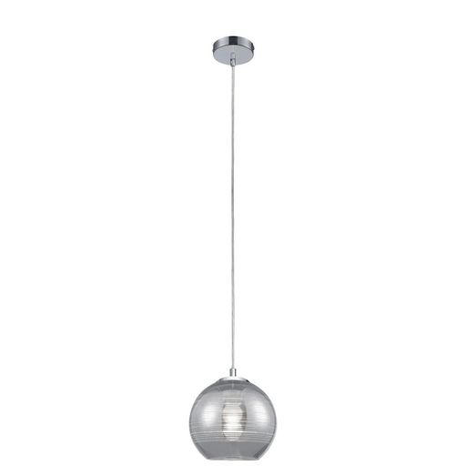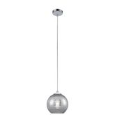 FICHE TECHNIQUE- Suspension en verre avec revêtement chrome.- Protection : IP20.CARACTERISTIQUES TECHNIQUES- Dimensions : Diam. 20 x H. 120 cm.- Type de culot : E27.- Puissance maximale : 40W.- Fonctionne avec 1 ampoule remplaçable non fournie.- Partere : diamètre 11cm.