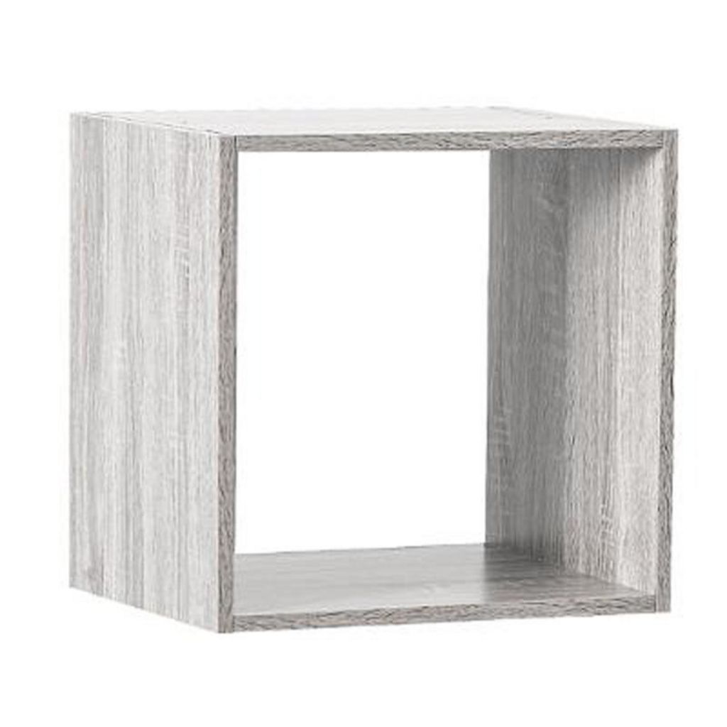 Informations Techniques : Dimensions : L. 34,4 x P. 32 x H. 34,4 cm Matière : Panneau de Particules Spécificités : Tendance & Pratique A monter soi-même Poids : 3,6 kg Couleur : Gris Les astuces Mix N Modul Choisissez votre étagère Complétez par des boites de rangement Composez selon vos envies