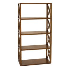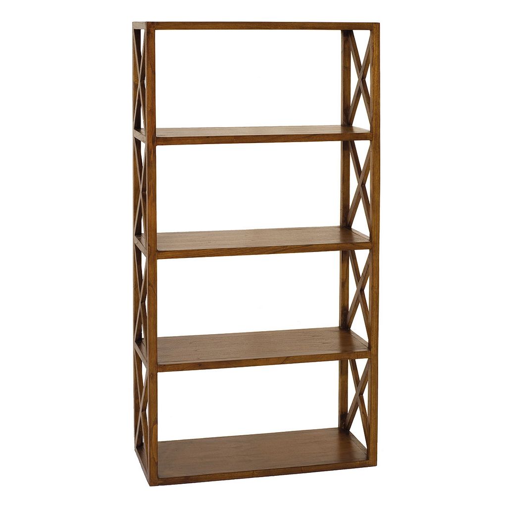 Étagère marron croisillons 4 niveaux bois Mindi. Dimensions : 80 x 35 x 160 cm. Article en Mindi et Contreplaqué. Une touche ethnique, une ligne contemporaine pour rendre l'atmosphère chaleureuse. Meuble monté