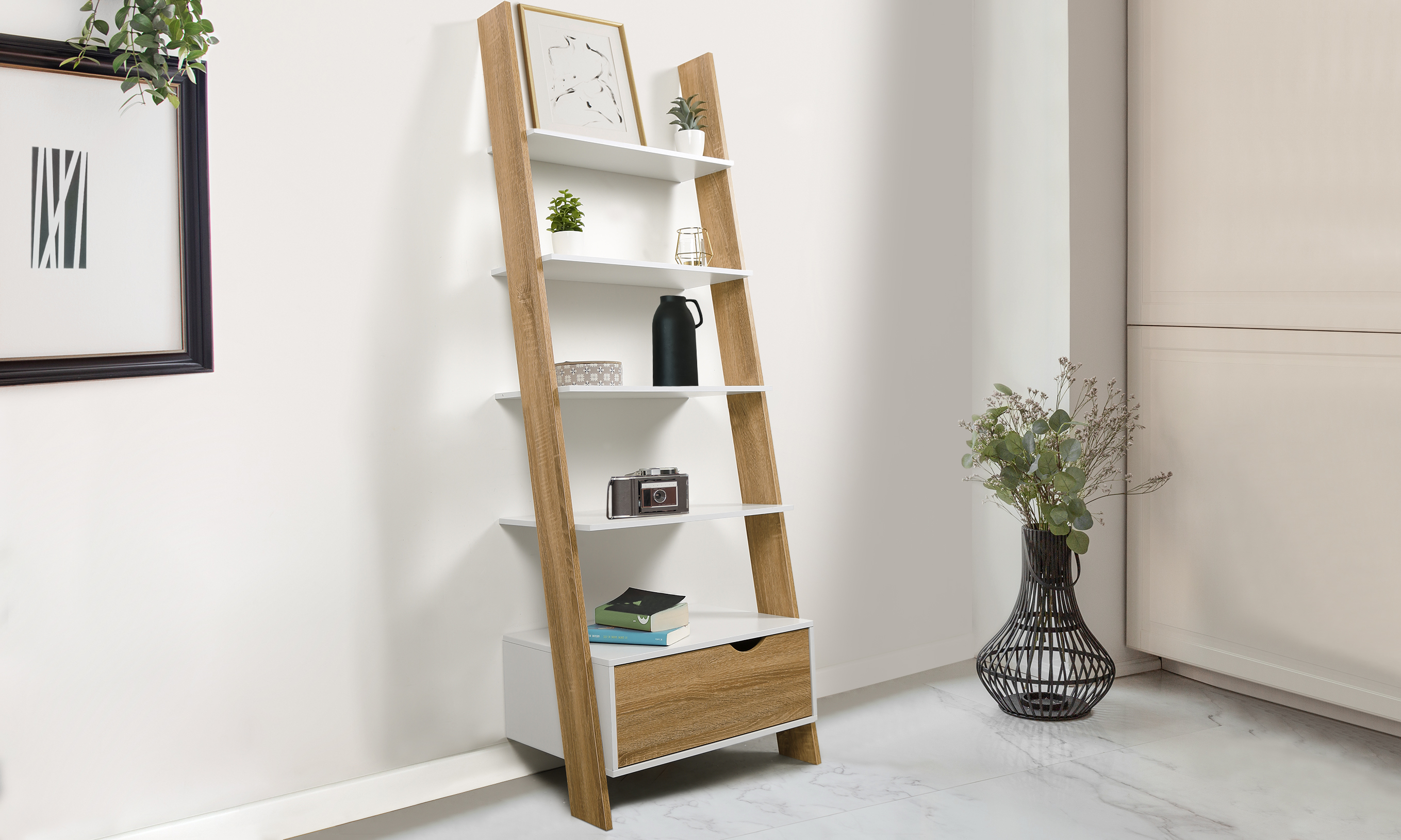 Voyez le rangement d'une autre manière. Avec cette étagère échelle, alliez design et rangement ! Doté de 4 étagères et d'un tiroir, elle peut être à la fois étagère et bibliothèque. Sa structure à la fois pratique et minimaliste en fait un meuble de rangement raffiné et fonctionnel. Une fois en place, cette échelle étagère sublimera tous vos espaces de vie. Un produit Idomya Factory®