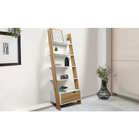Voyez le rangement d'une autre manière. Avec cette étagère échelle, alliez design et rangement ! Doté de 4 étagères et d'un tiroir, elle peut être à la fois étagère et bibliothèque. Sa structure à la fois pratique et minimaliste en fait un meuble de rangement raffiné et fonctionnel. Une fois en place, cette échelle étagère sublimera tous vos espaces de vie.