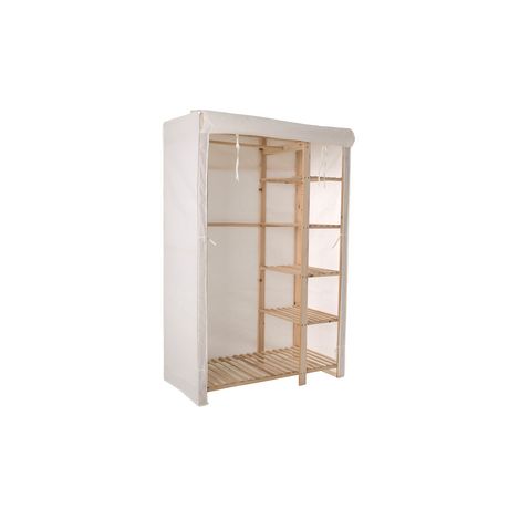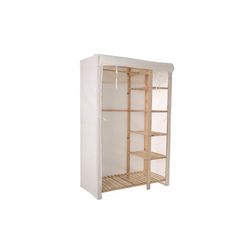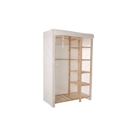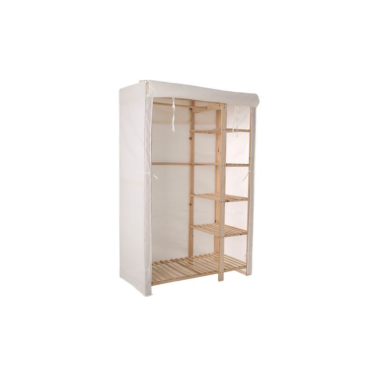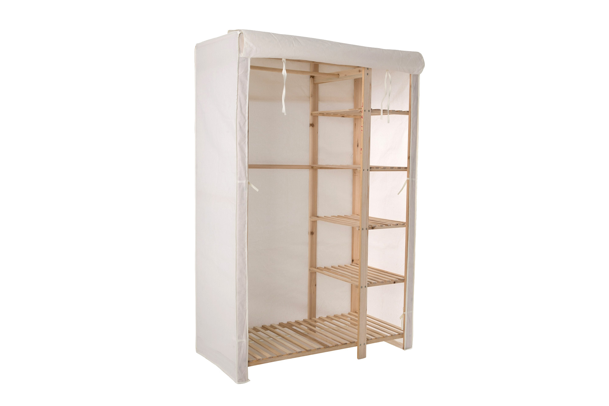 Etagère penderie réversible avec une structure en sapin massif, Composée de 1 tringle penderie + 4 petites tablettes et 1 grande tablette de fond. Housse en toile écrue (100% coton).