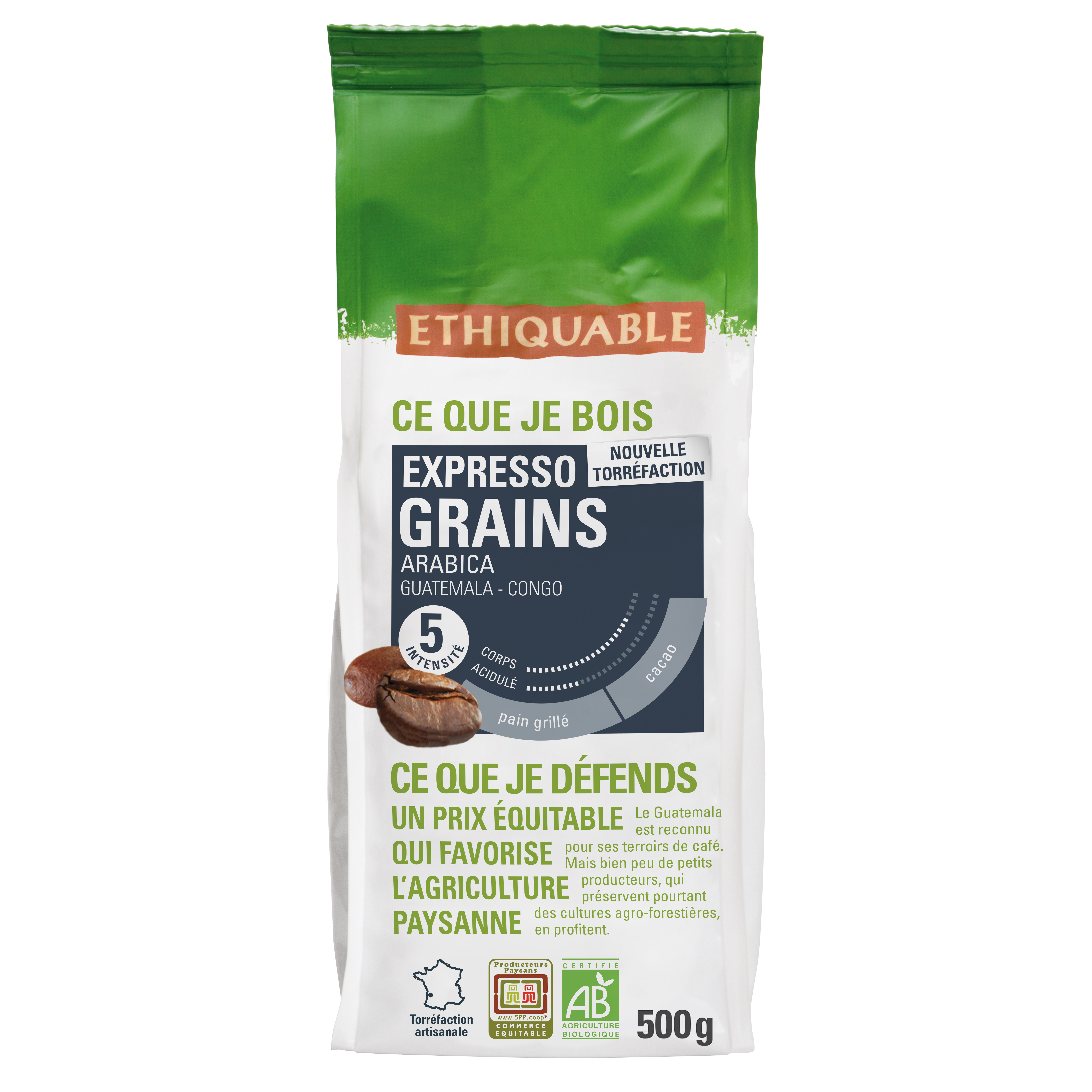 Ingrédients : Café expresso en grains issu du Commerce Equitable et de l'Agriculture Biologique