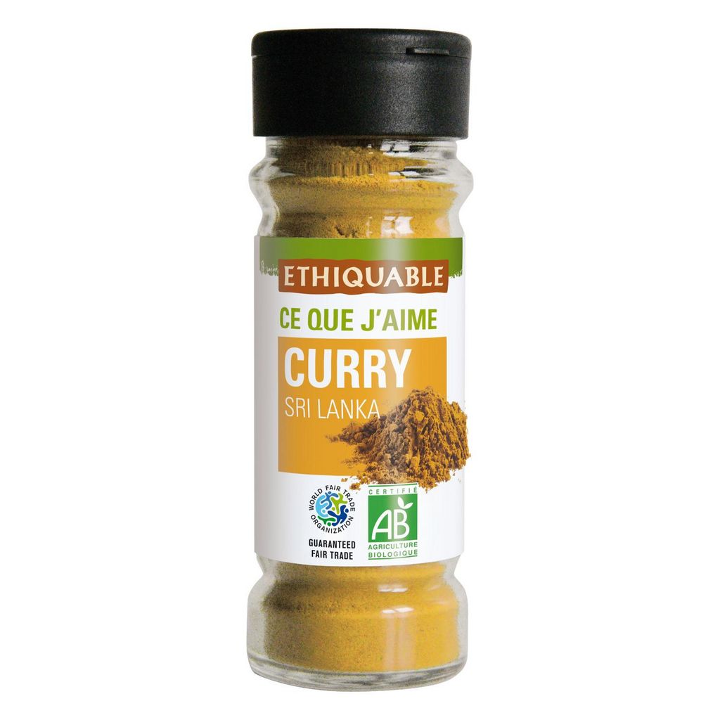 CE QUE J'AIME : Mélange d'épices et d'herbes relativement doux et très parfumé d'inspiration de l'Inde. Ce curry est composé entre autres de cumin, fénugrec, citronnelle et paprika. Notre curry de Ceylan est une épice essentielle dans nos cuisines pour confectionner des plats salés, des quiches, des soupes, des mijotés de légumes, etc. Ethiquable est sur le terrain avec les producteurs de la coopérative SOFA depuis de nombreuses années pour concrétiser des projets de commerce équitable à impact. Epices bio issus du commerce équitable. Conditionné dans notre atelier dans le Gers