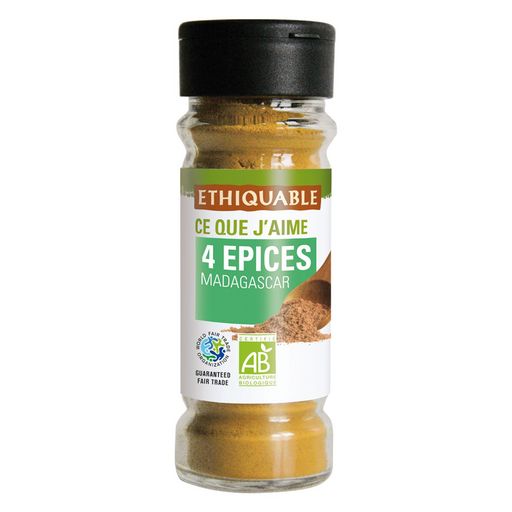 Ingrédients : Mélange de 4 épices issu du commerce équitable et de l'agriculture biologique