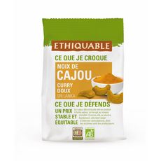 Ingrédients : noix de cajou°* 90%, mélange d'épices curry°* 2,5%, sel, curcuma°*, gomme d'acacia°