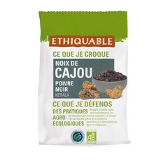 CE QUE JE CROQUE : Un assaisonnement de caractère, relevé juste comme il faut, pour ces cajous bio et équitables. Le poivre noir du Kérala de la coopérative FTAK est reconnu pour son parfum subtil et son agréable piquant.