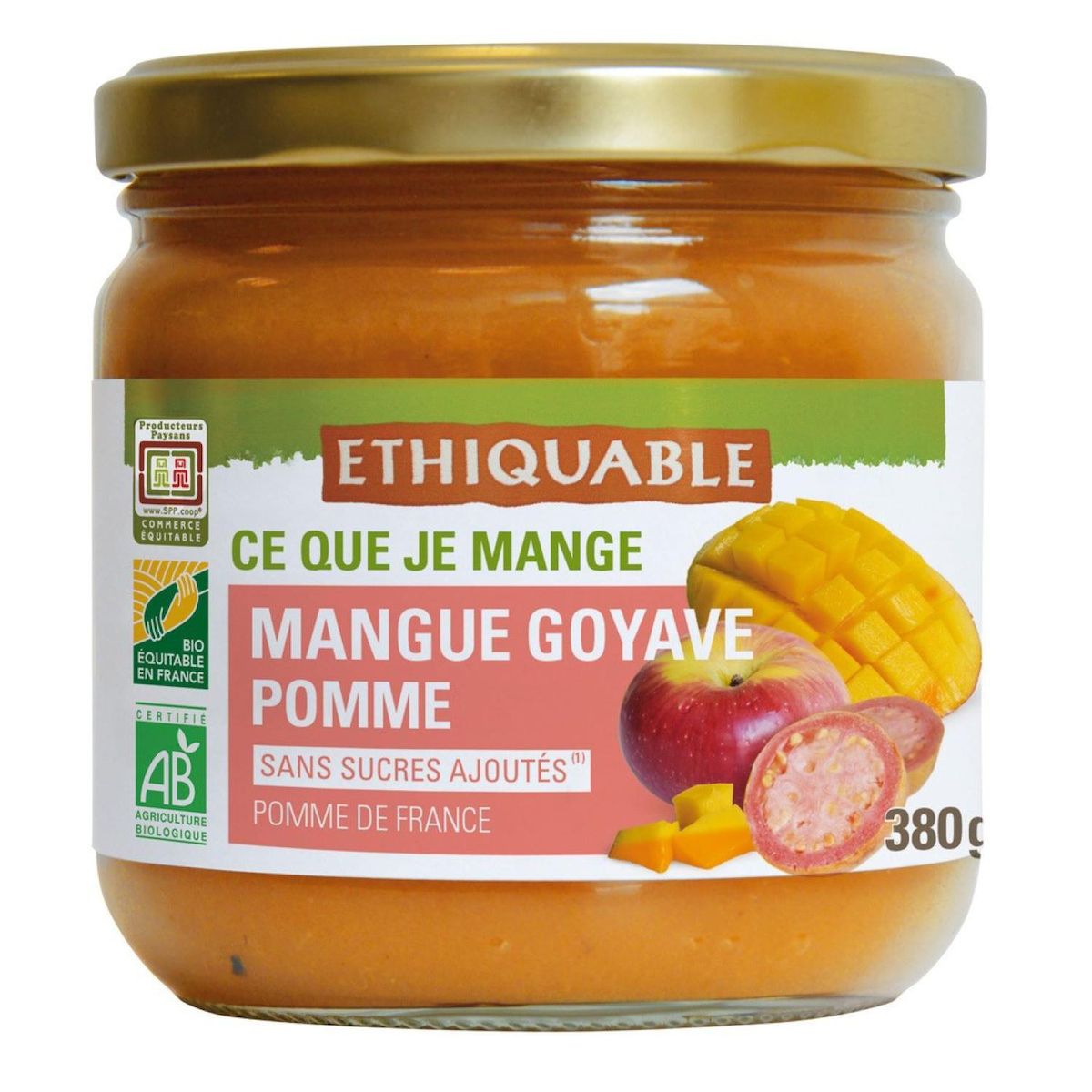 CE QUE JE MANGE : Entre douceur tropicale et fraîcheur locale, cette purée de fruits bio associe la mangue du Pérou, la goyave d’Équateur et les pommes françaises des Monts du Lyonnais. Élaborée uniquement avec des fruits issus du commerce équitable, elle vous offre une texture lisse et parfumée, sans sucres ajoutés, ni conservateurs, ni arômes artificiels. Fabriquée en France dans l’atelier de la coopérative Etic’Monts Bio, cette purée 100 % fruits valorise le savoir-faire des producteurs tout en préservant la richesse aromatique des fruits. Un combo gagnant que ce soit pour vos papilles et pour les producteurs du Pérou, d'Équateur et de la région lyonnaise.