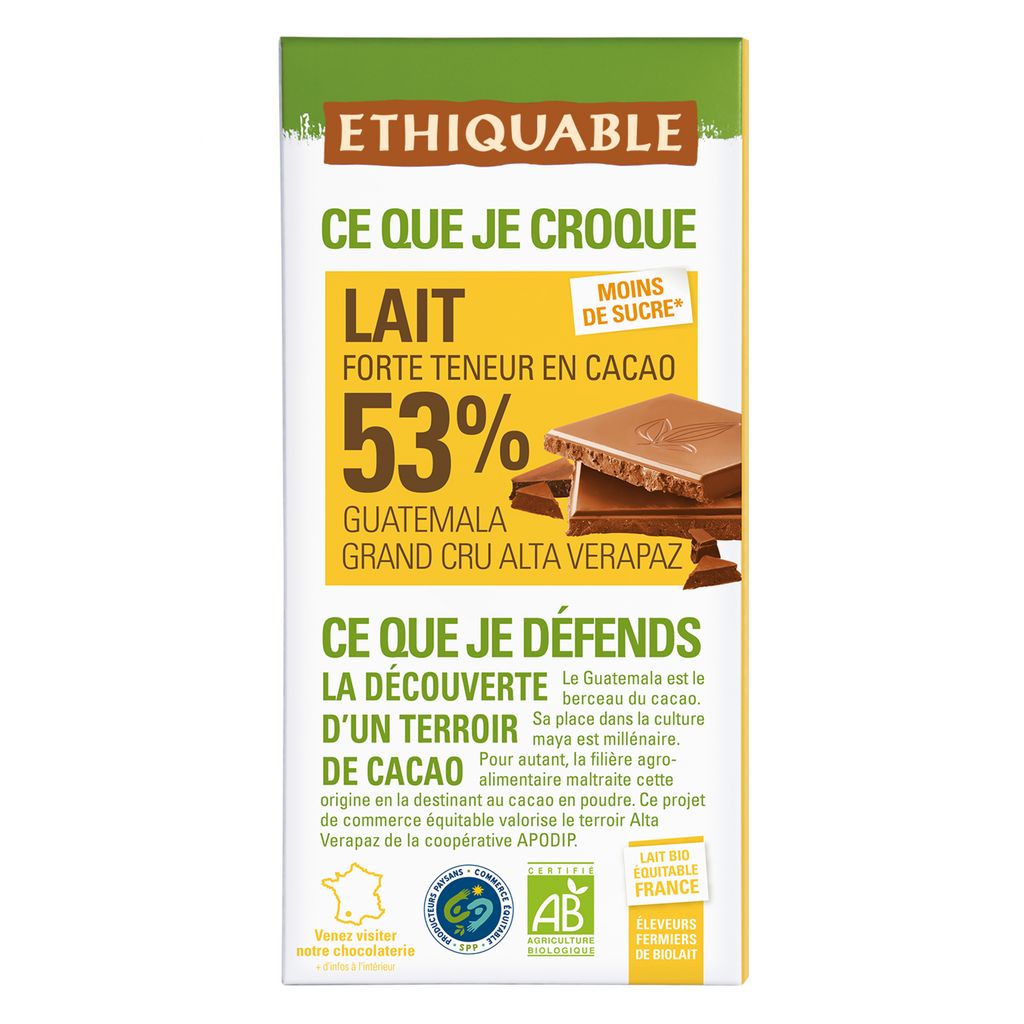 CHOCOLAT LAIT 53% GUATEMALA/ÉQUATEUR BIO 100G