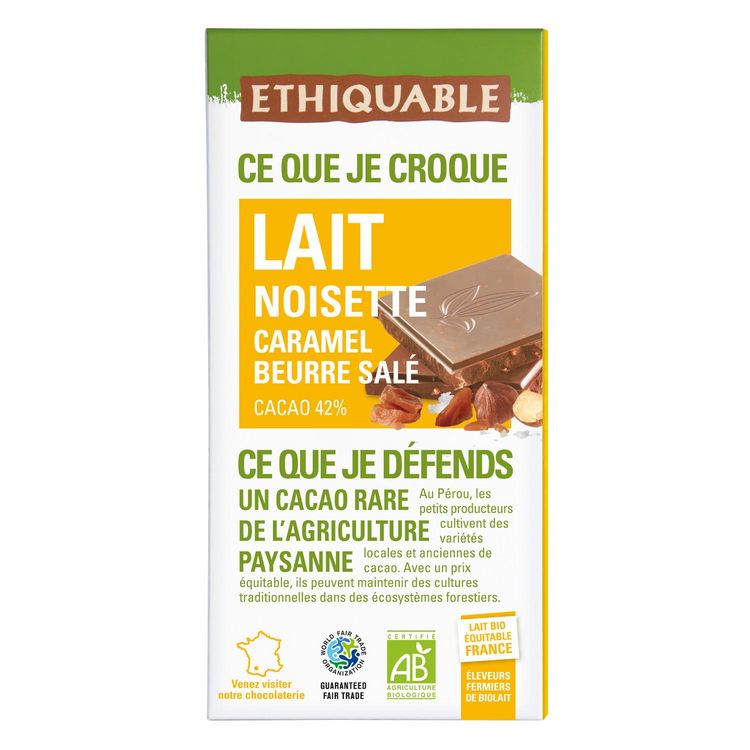 CHOCOLAT LAIT NOISETTE CARAMEL BEURRE SALÉ BIO 100G