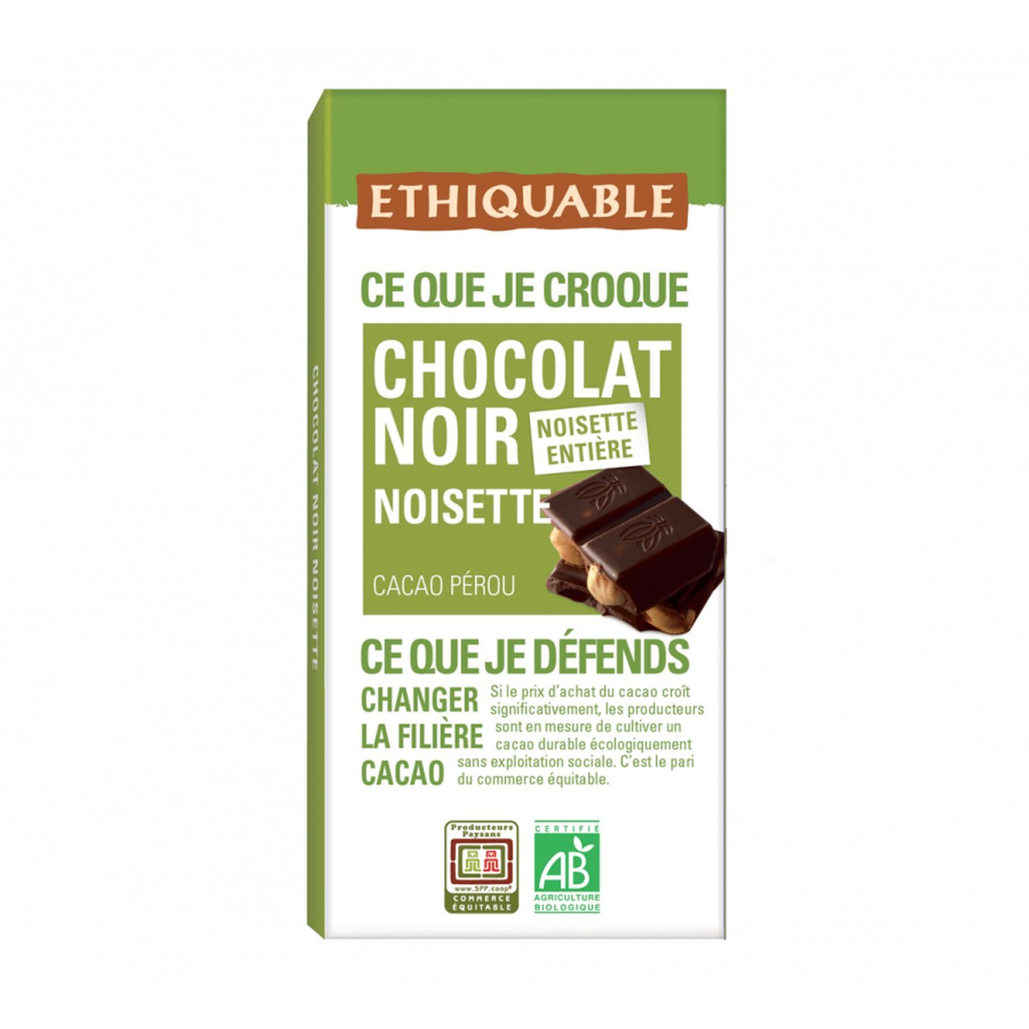 CHOCOLAT NOIR NOISETTES BIO 100G A déguster