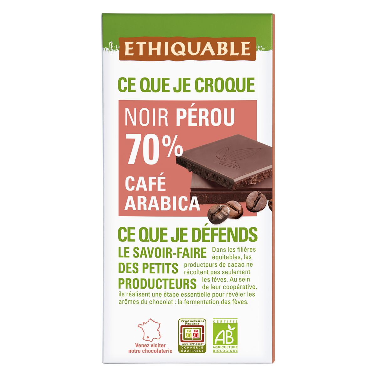 CHOCOLAT NOIR 70% CAFÉ ARABICA PÉROU BIO 100G