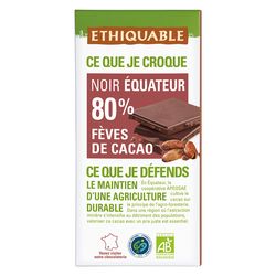 Tablette de chocolat noir bio 80% fèves de cacao Equateur Côte d'Ivoire