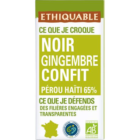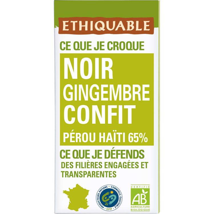 CHOCOLAT NOIR GINGEMBRE CONFIT PÉROU/HAÏTI/NICARAGUA BIO 100G