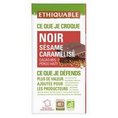 Tablette de chocolat noir bio sésame caramélisé 65% cacao