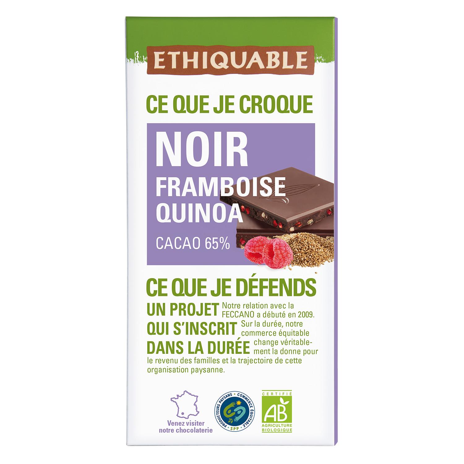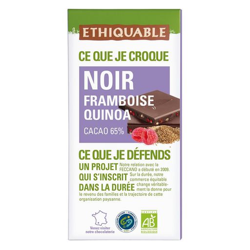 CHOCOLAT NOIR 65% FRAMBOISE QUINOA BIO 100G