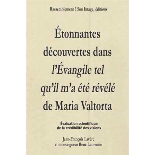 D'une importance de premier ordre pour la crédibilité des incontournables visions de Maria Valtorta. Jean-François Lavère est ingénieur chimiste retraité. Il consacre depuis des années les loisirs de sa retraite à répertorier et évaluer l'ensemble des données matérielles contenues dans le récit de Maria Valtorta (lieux, historicité des personnages, archéologie, arts et techniques, us et coutumes, faune et flore et, bien sûr, cohérence de la chronologie). Après avoir vérifié plus de dix mille données qu'il a répertoriées, il obtient un taux de crédibilité de 99, 9%. Monseigneur René Laurentin est prêtre et docteur en théologie, consulteur à la commission théologique préparatoire au Concile Vatican II (1960) et expert au Concile (1962-1965), journaliste professionnel pour le Figaro et Chrétiens Magazine où il est chroniqueur religieux à partir de 1963. C'est un mariologue (études de la Vierge Marie) et un spécialiste des apparitions. Il est promu prélat de Sa Sainteté Benoît XVI, le 30 avril 2009.