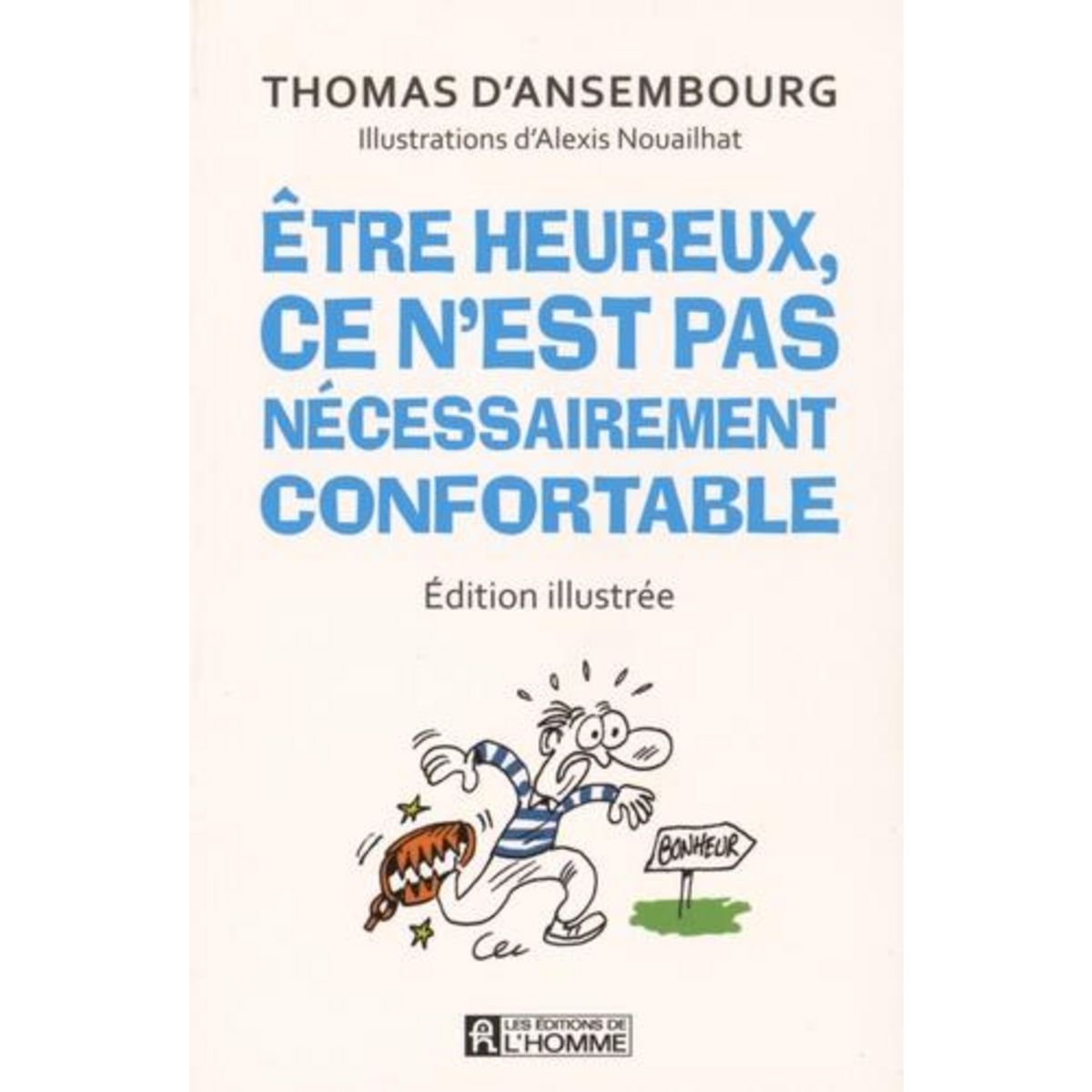 Libérez-vous des pièges antibonheur... avec le sourire ! A la suite du succès remporté par l'édition illustrée de Cessez d'être gentil, soyez vrai ! , parue en 2014, Thomas d'Ansembourg récidive et nous revient avec l'édition illustrée d'un autre de ses best-sellers. Alexis Nouailhat reprend lui aussi du service et met son talent d'illustrateur au service des propos de l'auteur, plus actuels que jamais. Croire que pour être heureux, il faut se sentir bien tout le temps et mener la vie dont on a rêvé à tous points de vue, voilà une illusion qui empêche bien des gens de goûter pleinement les moments de bonheur qui jalonnent leur vie. C'est même un piège dans lequel plusieurs d'entre nous restent pris longtemps... Des pièges antibonheur, Thomas d'Ansembourg en a cerné plusieurs. Au fil des ans, il a analysé méthodiquement leur mécanique et découvert comment ils se manifestent quotidiennement dans nos habitudes de vie et nos façons de penser. A l'aide d'exemples concrets, il nous invite à prendre conscience des pièges antibonheur qui limitent notre vie et nous propose des apprentissages pratiques pour nous en libérer. Si ces deux étapes ne sont pas nécessairement toujours confortables, elles sont cependant essentielles pour apprendre à traverser les difficultés et les souffrances de la vie ainsi qu'à ressentir un bien-être intérieur de plus en plus grand. Pièges antibonheur . = habitude de pensées et de fonctionnements qui nous piègent et nous empêchent d'être heureux.