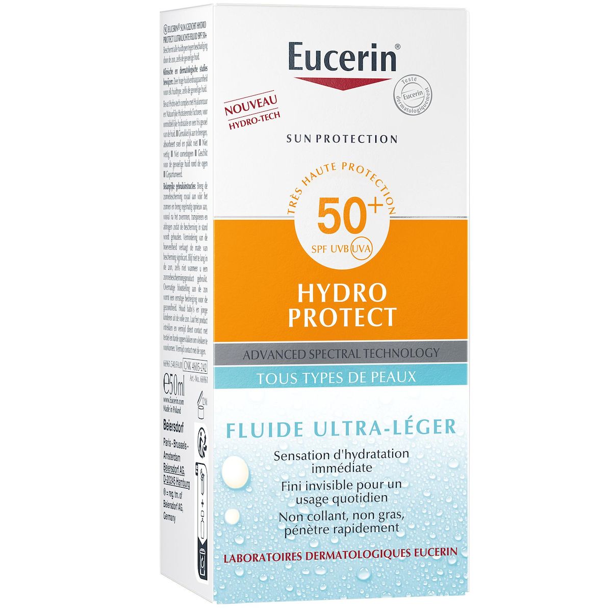 Sun, Hydro Protect, SPF50+, Crème solaire, protection solaire, soleil, solaire, Eucerin, été, Sun protection, visage, fluide, ultra-léger, hydratation, fraîcheur, peaux sensibles, usage quotidien, non collant, non gras, UVB, UVA