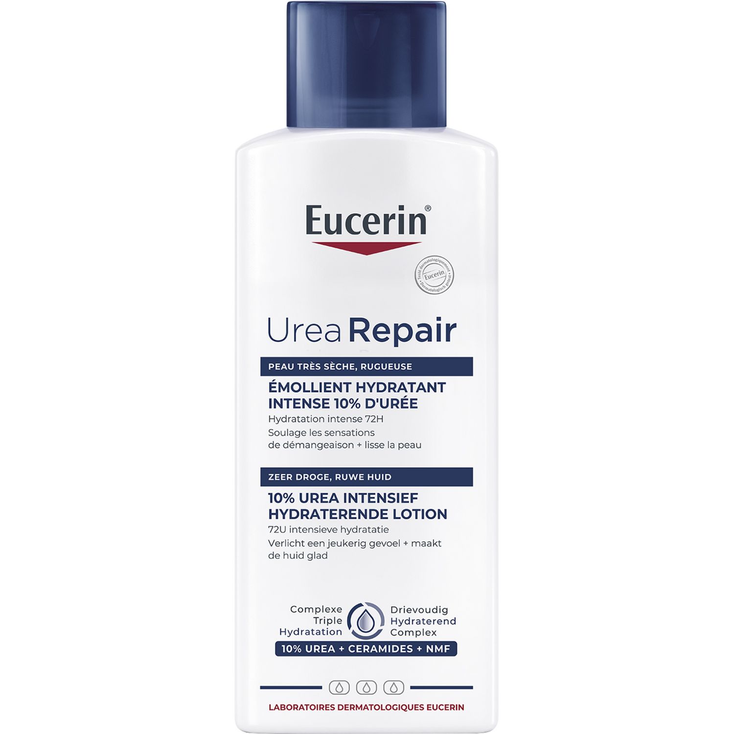 - La formule enrichie en Urée et NMF (Natural Moisturizing Factor) améliore les capacités de fixation de l’eau dans l’épiderme et donc le niveau d’hydratation cutanée.