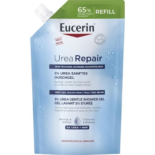 UreaRepair Gel Lavant 5% d'Urée Écorecharge permet de recharger le flacon pompe UreaRepair Gel Lavant 5% d'Urée. Sa formule sans savon à 5% d'Urée et contenant des Facteurs Naturels d'Hydratation (NMF) nettoie et exfolie en douceur la peau sèche et rugueuse, tout en préservant la barrière naturelle de la peau et en la protégeant du dessèchement.