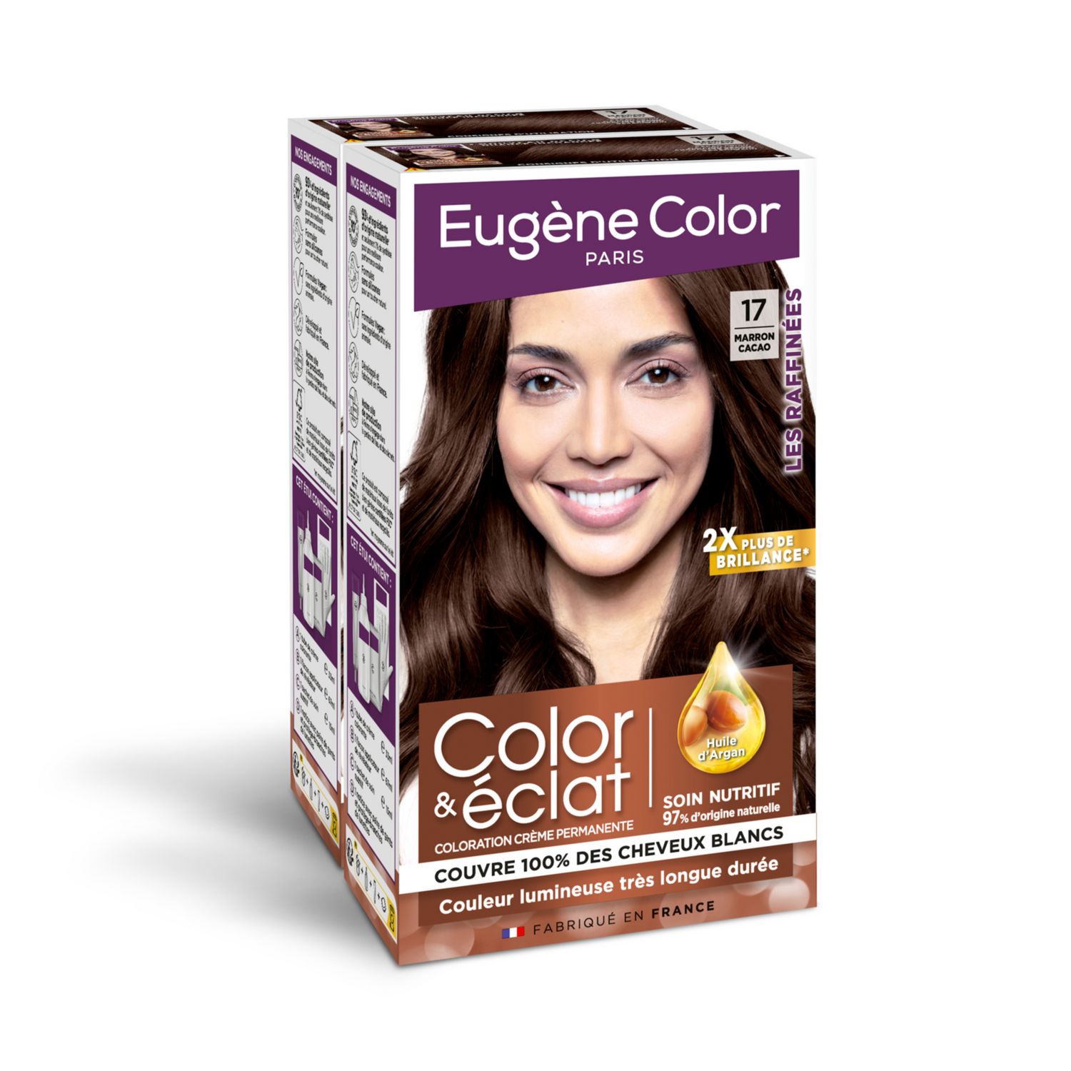 La garantie d’une couleur intense et sans aucun cheveu blanc Des crèmes colorantes permanentes aux nuances intenses et élégantes qui apportent des reflets brillants longue durée. Eugene color color et éclat les raffinées N° 17 marron cacao LT 2