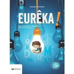 En savoir +Eurêka ! est un dictionnaire qui permet aux élèves de partir de la prononciation d'un mot pour en trouver la transcription exacte. Il constitue ainsi une aide précieuse face aux difficultés qu'éprouvent les élèves en orthographe. Il tient compte des rectifications orthographiques, tout en signalant les anciennes graphies. Cette édition compte plus de 13 800 mots dont 3 800 issus du Vocabulaire Orthographique de Base actualisé (V.O.B.).