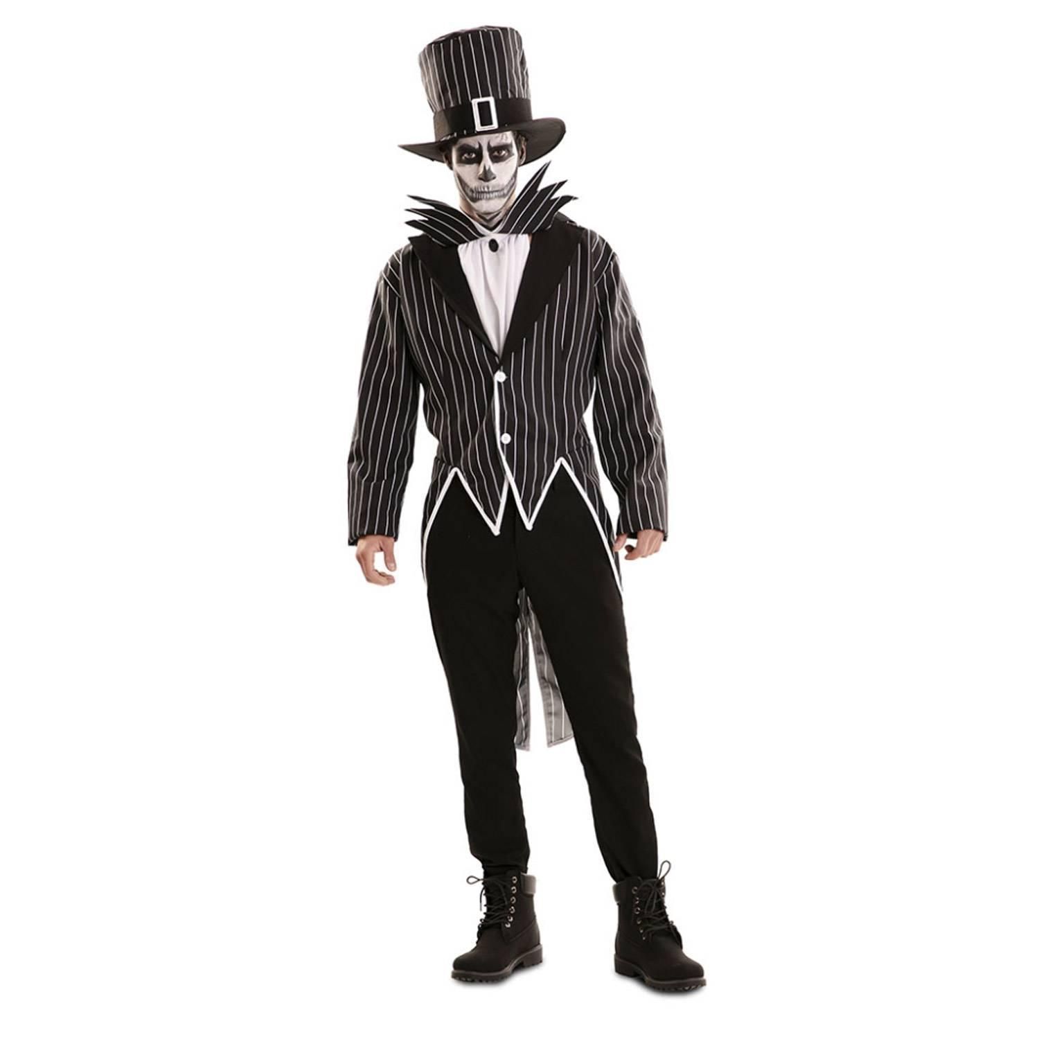 M/L - Quel gentleman ce squelette ! Grand altique d'Halloween, le squelette fait partie des déguisements les plus portés !Contient : une fausse chemise, une veste, un chapeau Age minimum : la naissance