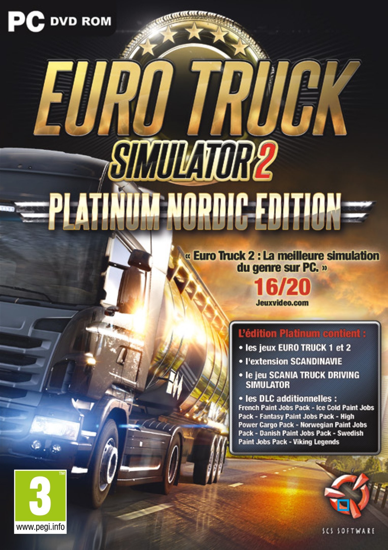 L'édition Platinum contient : Les jeux Euro Truck 1 et 2, l'extension Scandinavie, le jeu Scania Truck Driving Simulator et de nombreux DLC additionnels