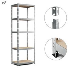 Lot de 2 étagères de rangement polyvalentes en métal pour le stockage de charges lourdes ou volumineuses.