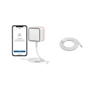 Le Eve Water Guard est un détecteur de fuite d'eau intelligent conçu pour la surveillance domestique. Il vous alerte immédiatement en cas de fuite grâce à une alarme sonore de 100 dB et un voyant lumineux rouge clignotant. Il envoie également des notifications sur iPhone pour vous assurer une vigilance constante. Son câble de détection flexible mesure 2 mètres, mais il est extensible jusqu'à 150 mètres pour une large zone de surveillance. Ce détecteur est compatible avec Apple HomeKit et le réseau Thread, offrant une intégration aisée dans votre système domotique existant. Le boîtier est en plastique de haute qualité, avec des dimensions compactes de 65 x 65 x 45 mm et un poids de 0,37 kg. Il se connecte à une alimentation secteur de 100 à 240 V, garantissant une utilisation fiable et continue.