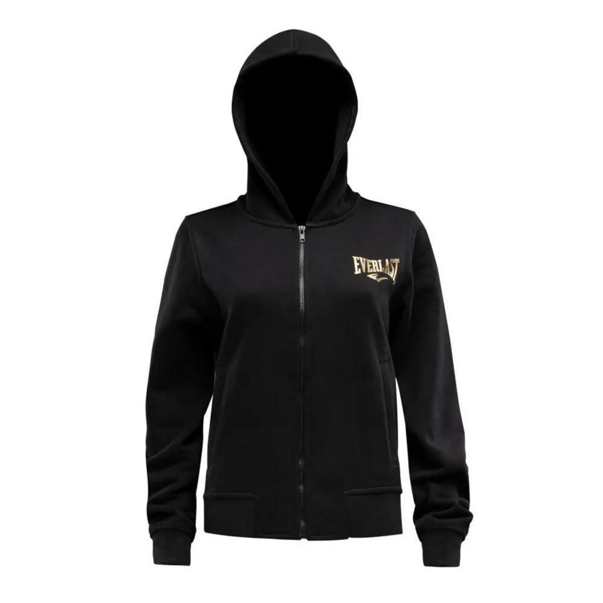 Optez pour le sweat femme de la marque Everlast Manches longues Capuche Fermeture zippée 2 poches Inscription dans le dos et sur la poitrine 'Everlast' Coloris : Noir Composition : 100% coton