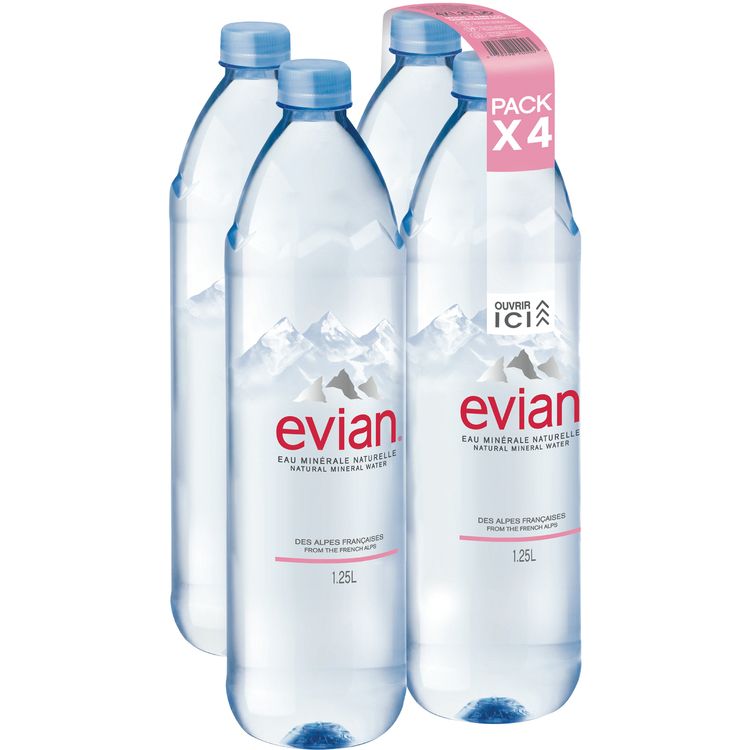Le format 1,25L Prestige : une bouteille pour les belles tables, qui rend hommage par sa transparence et son élégance à l’origine et la pureté d’evian. Pack à la technologie révolutionnaire. Eaun minérale naturelle
