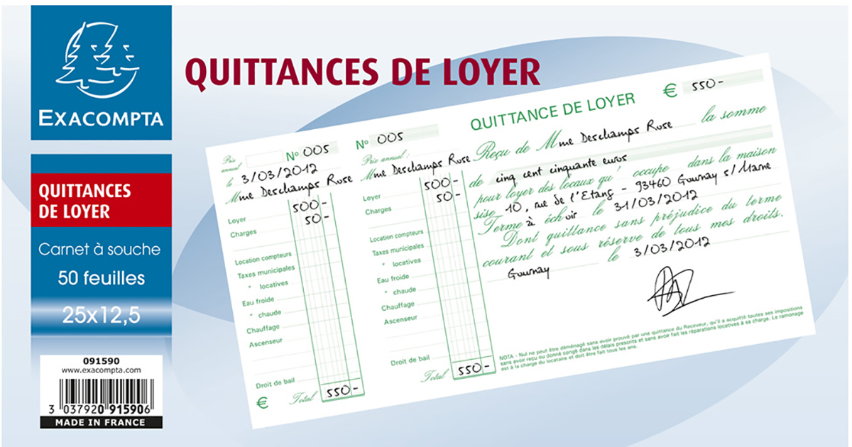 Manifold 12.5x25cm - 50 feuilles - Quittance de loyer