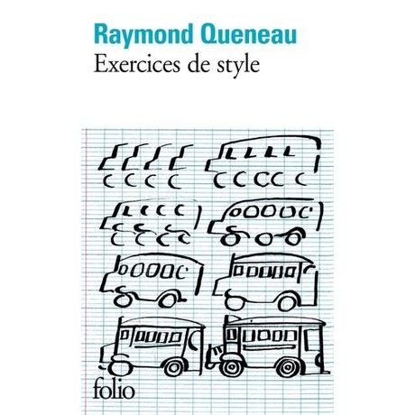 Cette brève histoire est racontée quatre-vingt-dix-neuf fois, de quatre-vingt-dix-neuf manières différentes. Mise en image, portée sur la scène des cabarets, elle a connu une fortune extraordinaire. Exercices de style est un des livres les plus populaires de Queneau.