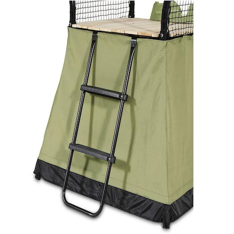 L'aire de jeux Ivy est l'endroit idéal pour un après-midi de jeux entre amis ! En utilisant les marches, les enfants grimpent jusqu'à la plate-forme en bois, où ils peuvent s'accrocher aux filets solides ou s'y appuyer confortablement avant de dévaler le toboggan. Il fait bon se détendre dans la tente de jeux Ivy. Ton enfant peut s'y retirer avec un livre ou s'amuser avec ses jouets préférés. Et il y a plus amusant ! La toile verte de la tente de jeux peut être facilement enlevée, transformant le fond de l'aire de jeux Ivy en bac à sable. Les enfants y joueront sans répit !