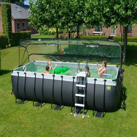 Piscine tubulaire Black Leather rectangulaire 5,40 x 2,50 x 1,22 m avec dôme - Exit Toys