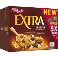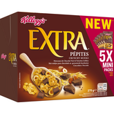 Pépites de céréales croustillantes avec des morceaux de chocolat et de noisettes.